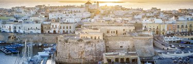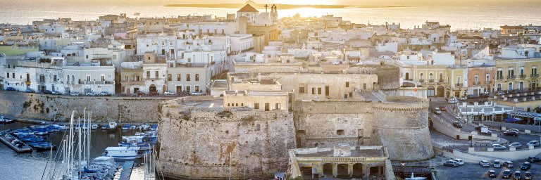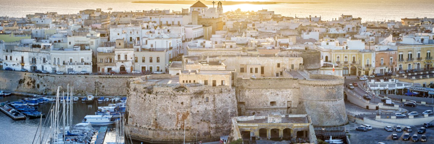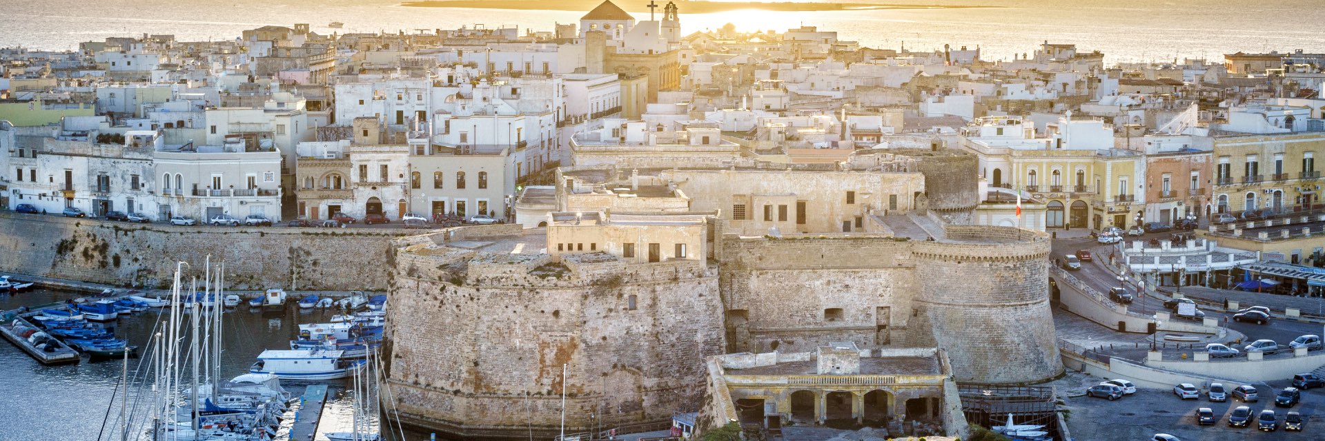 The sun rises over a Greek waterside town.