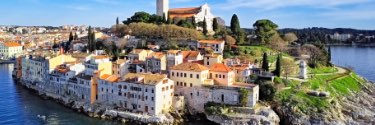 Spectacular stone paved street and restaurant entrance with colorful mediterranean flowers.