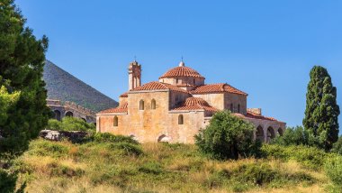 Two fortresses – the Ottoman-era Néokástro and medieval Paleokastro – welcome you to the Bay of Navarínou, a natural harbor in the Peloponnese. Established after the 1827 naval battle that paved the way for an independent Greece, Pylos now guards the entrance to this beautiful bay. The area’s many beaches are unspoiled, most notably Voïdhokiliá, a picture-perfect semicircle of white sand that separates the Gialova Lagoon from the sea. A short drive from town takes you to the hilltop ruins of Nestor’s Palace. The best-preserved royal complex of Greece’s Mycenaean civilization, this renowned site has yielded priceless insights into Bronze Age history. Back in Pylos, take a seat for dinner in at one of the lively cafés and tavernas that surround the war memorial in the town’s main square.