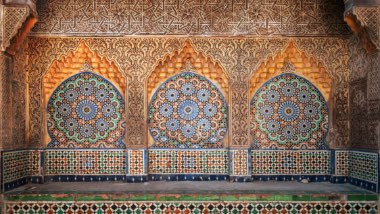 Intricate and colorfully designed Moroccan arches.