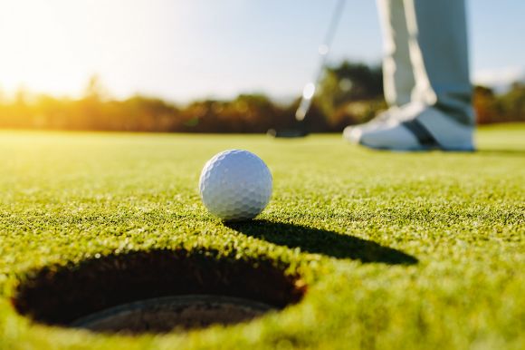 A golf ball on the edge of the hole.
