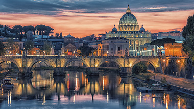 An amazing amalgam of sights and sounds, Rome is a kinetic tapestry stimulating every sense. The ring of church bells and honks of early morning traffic echo off the weathered stone of ancient buildings. Office workers dash past fruit stands and sidewalk cafés in the shadows of elegant palace façades. Meanwhile, tourists make their way from piazza to piazza, monument to monument, church to church: the Colosseum, the Roman Forum, the Vatican Museums, St. Peter’s Basilica. From the sculptures of the ancients to Michelangelo’s Sistine Chapel frescoes to the Baroque fountains of Bernini, Rome’s art and architecture are unsurpassed. Here the day-to-day life of a busy European metropolis intermingles with many of the most recognizable monuments ever created. Rome belongs not only to Italy, but to the world.