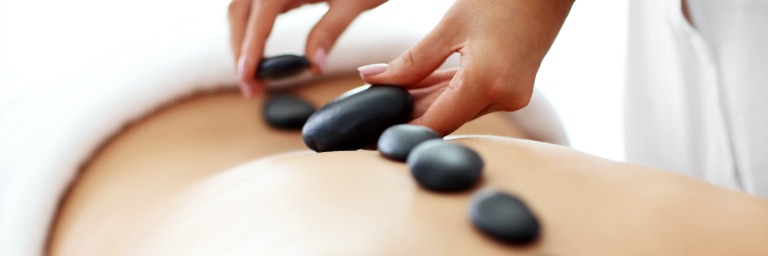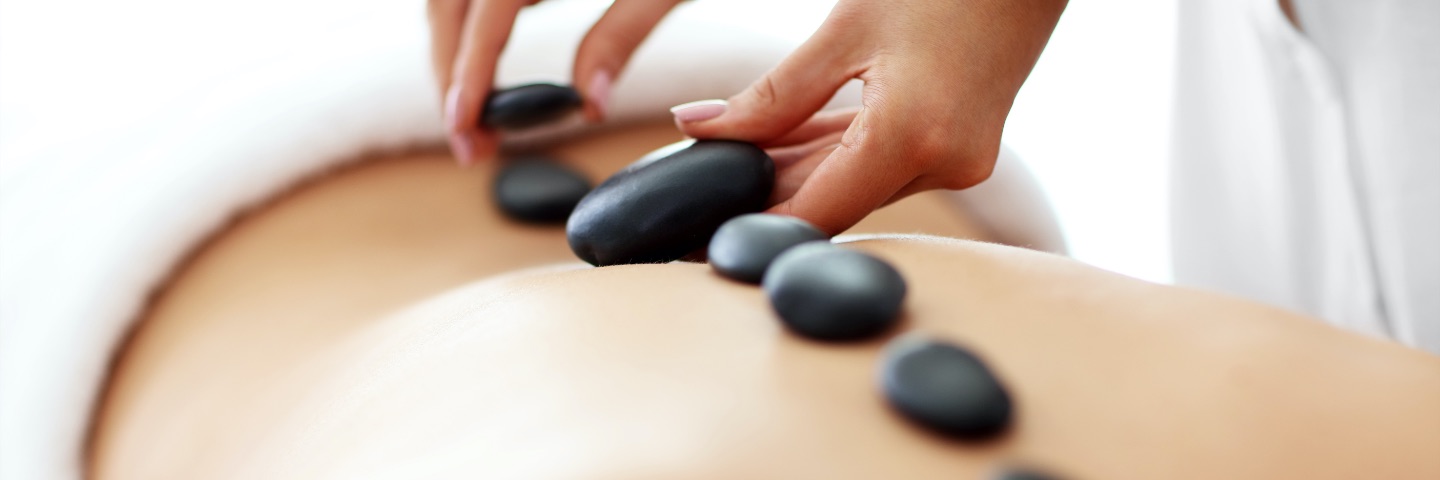 A guest enjoys a hot stone massage.