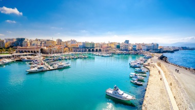 On the eastern coast of Crete lies the island’s capital and largest urban center, Heraklion. A lively port city on the surface, millennia of history lie beneath its modern facade. Turkish fountains lie within the modern bustling city center and Venetian buildings and Minoan fortresses transport visitors back in time. See Minoan art and artifacts at the Heraklion Archeological Museum and explore the impressive Koules fortress for a view of Heraklion’s past before roaming the city’s plazas. The Palace of Knossos transports visitors to the Minoan Era, with preserved remains of colorful murals and imposing red columns. Not only known for its historical sights, Heraklion is fringed with stunning beaches, from the former hippies’ paradise, Matala Beach to the golden sands of Agia Pelagia Beach.