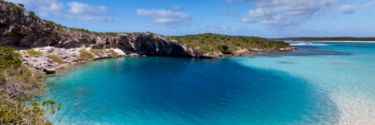 A view of Dean's Blue Hole and surrounding beach on Long Island, Bahamas.