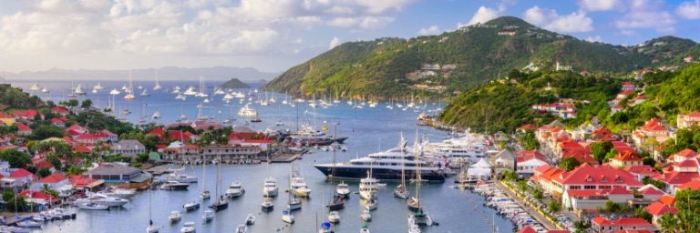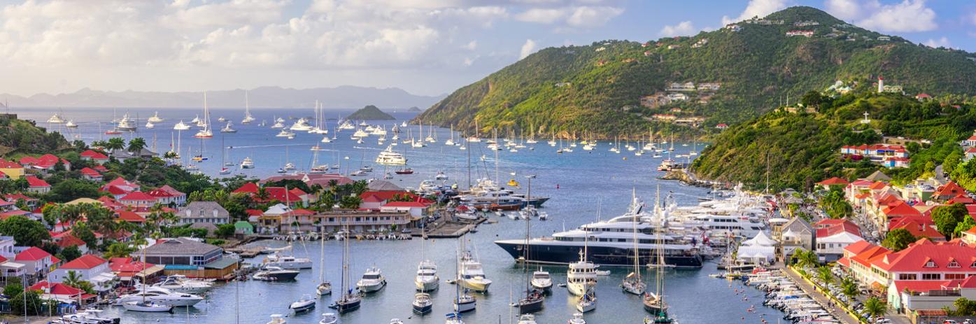 A busy sailing harbor, sprinkled with ships, beautiful orange rooftops and mountains.