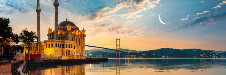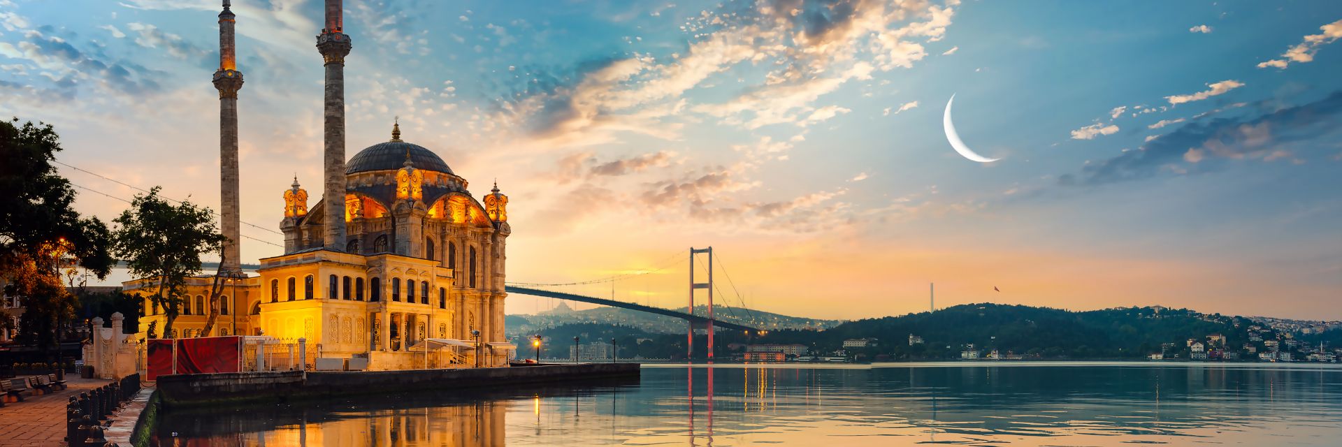 The Ortaköy Mosque with the Bosphorus Bridge in the background.