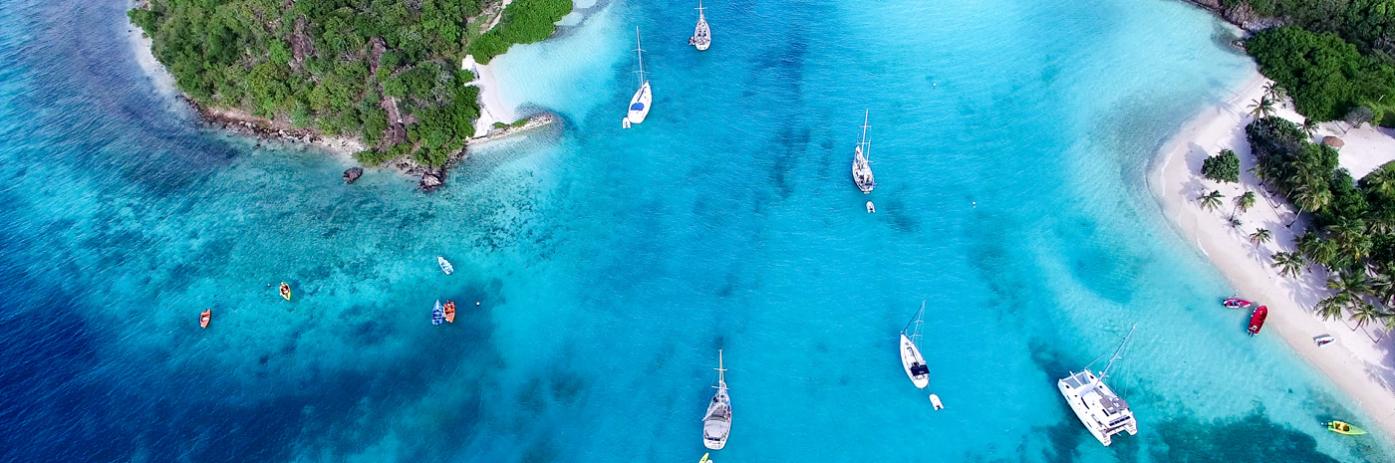 Small yachts anchored on turquoise blue water in Tobago Cays