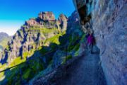The Vereda do Areeiro hiking trail on the edge of a cliff in Medeira.
