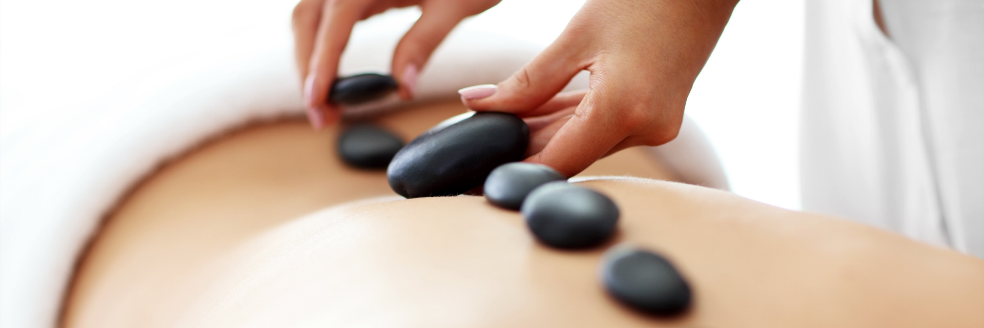 A guest enjoys a hot stone massage.
