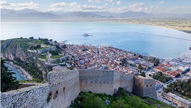 The Venetians left their mark in Nafplio. Perched on a cliff jutting into the sea, their impregnable fortress is an elegant display of Venetian might. Walk through the Old Town with its handsome neoclassical buildings and balconies dripping with bougainvillea. One of the most beautiful towns in Greece, Nafplio is also one of the most historic; its cultural roots date back to both the Argonautic expedition and the Trojan War. From here you can drive across the Peloponnese where tales from Homer’s Iliad come alive. Visit the immense beehive tomb of Agamemnon in the Bronze Age citadel of Mycenae, a UNESCO World Heritage site. Wonder at the acoustic marvel of the ancient theater in Epidaurus, another UNESCO World Heritage site, built in the 4th century BC and still in use today.