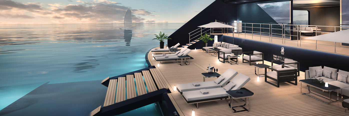A rendering of the aft marina of The Ritz-Carlton Yacht Collection