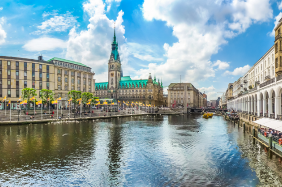 A cathedral and Gothic-style palaces overlooking the river.