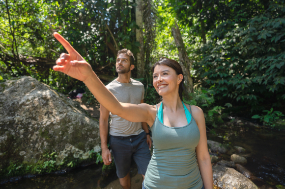 A man and a woman in the woods.