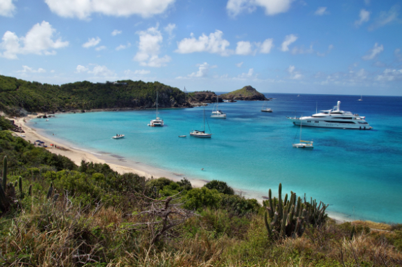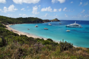 Sail aboard a catamaran to snorkel in the Marine Park off the coast of beautiful Colombier Beach.