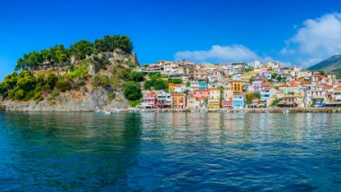 The picturesque resort of Parga offers island-style ambience and historic charm on the Greek mainland. Tiers of colorful houses, a legacy of Venetian rule, rise up over a secluded turquoise bay. In the crystal-clear waters is a tiny tree-covered islet, home only to a gleaming white chapel. From the pretty waterfront, a tangle of cobbled streets lead up to a hilltop medieval castle. The ruins overlook the bay below, the golden sands of nearby Valtos beach, orange and olive groves, and out to the Ionian Sea. The views are even more beautiful from a mountainside Ottoman fortress outside of town. Parga is also an ideal base for exploring the smaller islands of the Ionian archipelago and the archaeological sites, scenic villages and natural beauty of northwestern Greece.