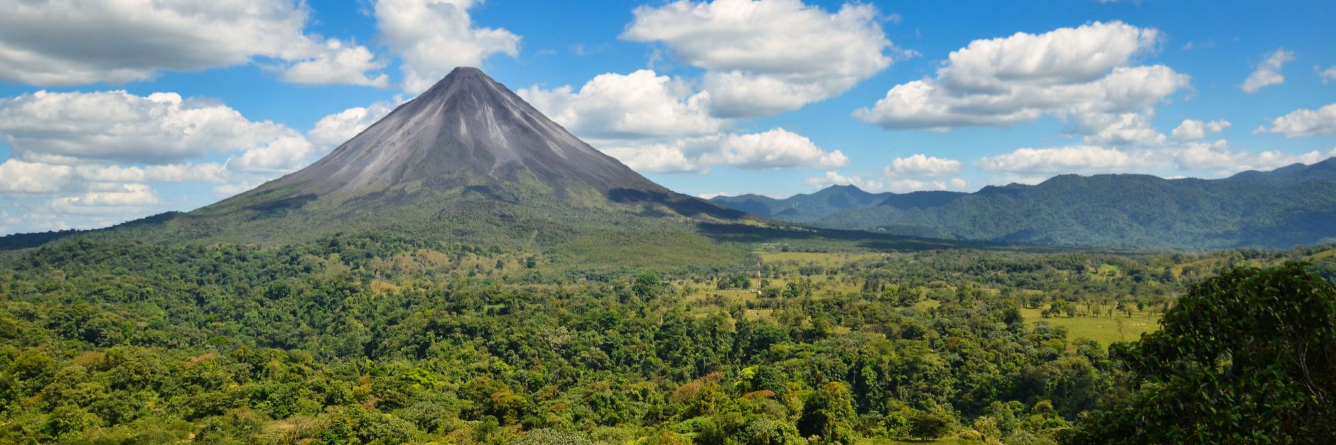 A panoramic view of Volcano Arenal in the rainforest of Costa Rica.