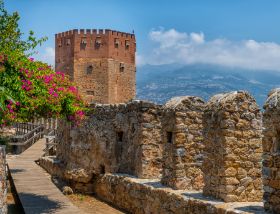Set along the scenic Turkish Riviera, Alanya is a resort town on the central Mediterranean coast with long stretches of powdery beaches, the most famous of which is named for the Egyptian queen who reputedly swam there. The white sands of Cleopatra Beach slope gently down into crystal blue waters where you could easily spend an entire day, although there is much more to Alanya than its shoreline. The ancient walls of Alanya Castle stretch for miles along a high promontory offering exceptional views of the modern city of Alanya below. Just on the other side of those walls, step back in time to explore Alanya's Old Town and an open-air museum. On the harbor side of town, additional historical remnants survive, including the famous Red Tower and Seljuk Shipyard – extensions of the Alanya Castle fortifications that date back to the 13th century.