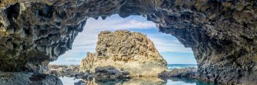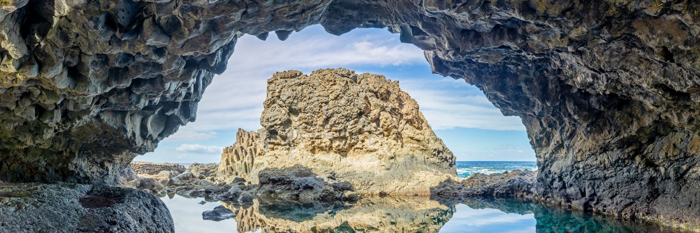 A volcanic cavern at Charco Azul beach on El Hierro, Canary Islands, Spain.