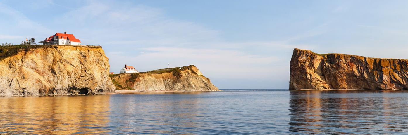 Lonely houses sit atop stone cliffs peeking out into deep blue waters