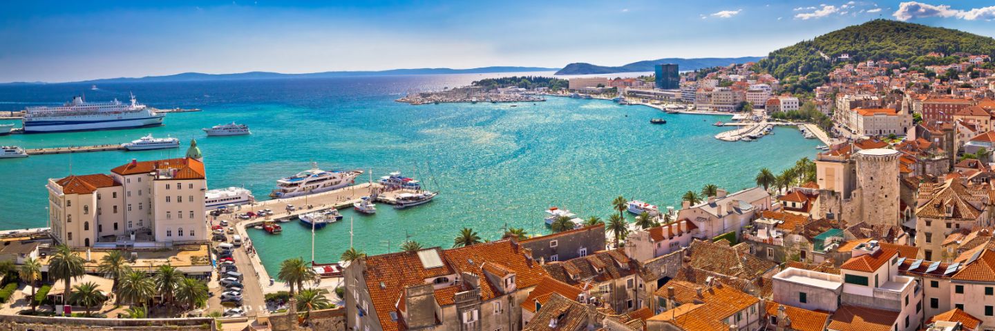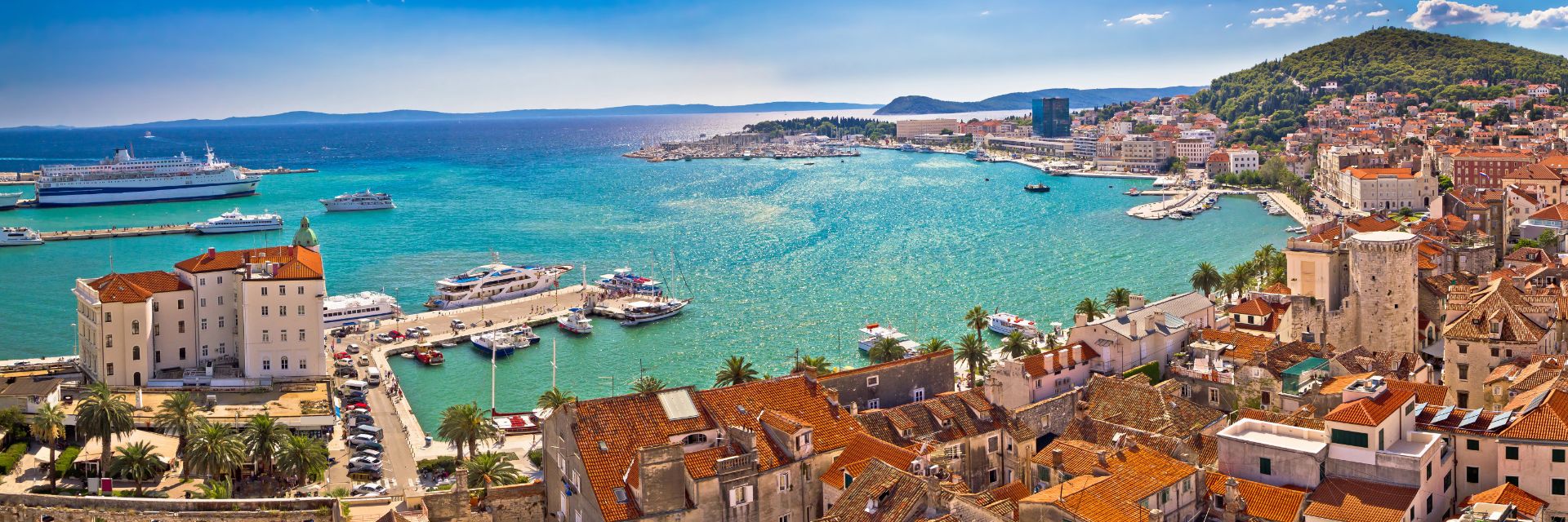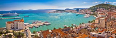 An aerial view of an the ancient palace of Diocletian's Palace, and the surrounding city Split, Croatia.
