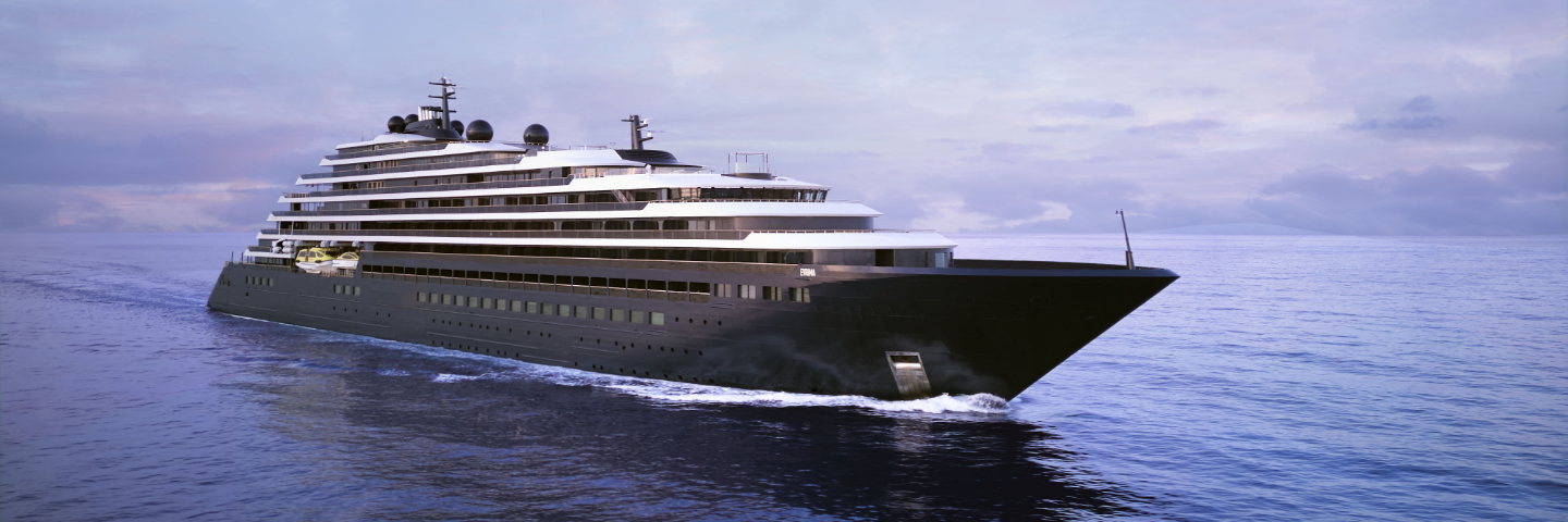 The Ritz-Carlton Yacht Collection's inaugural yacht, Evrima, sailing on open water.
