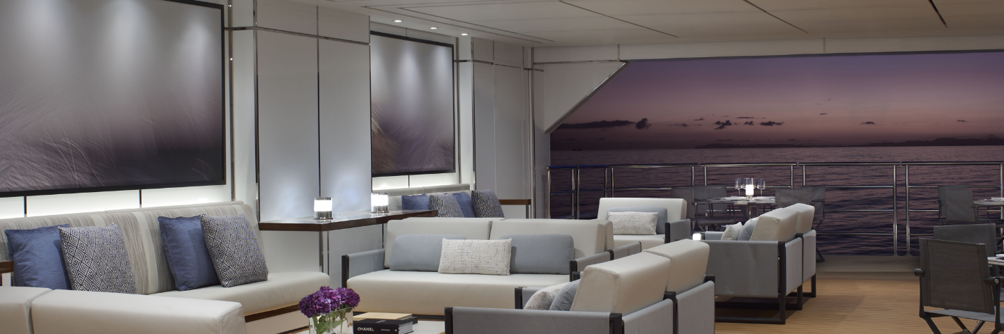The Marina Terrace aboard The Ritz-Carlton Yacht Collection's inaugural yacht Evrima.