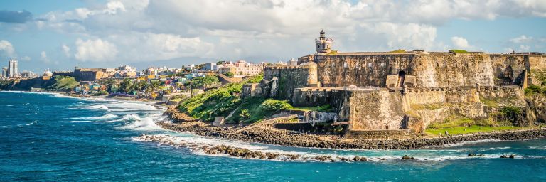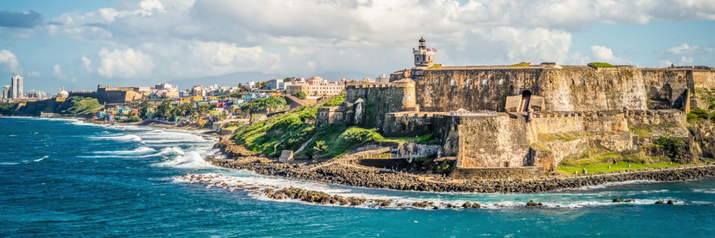 A fort in San Juan sitting along the coast.