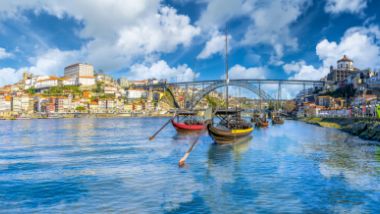 With rich cultural attractions and world-class museums, the compact city of Porto spreads upward from both sides of the Douro River, making it easy to explore on foot with a vigorous hike. A UNESCO World Heritage site, the historic Ribeira quarter on the waterfront is a maze of cobblestone streets and picturesque squares that tell a 2,000-year history in architecture. Dating to the 12th century, Porto’s Romanesque cathedral has evolved with a Baroque loggia and Gothic cloisters, while the neoclassical Palácio da Bolsa and the Beaux-Arts-style railway station bring the city into the 20th century. Cross the Dom Luís I Bridge, also a UNESCO World Heritage site, to visit local wine cellars and taste the region’s famous port wine. Further inland, medieval castles meld with 15th-century palaces in yet another UNESCO site, the first Portuguese capital of Guimarães.
