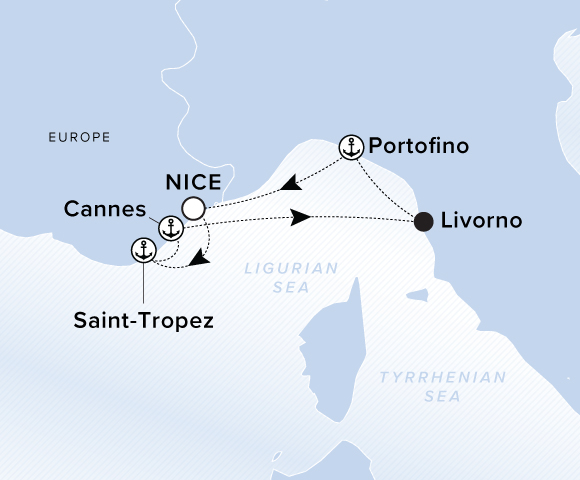 Explore Italy’s most scenic coastlines, beginning with the forested cliffs, iridescent blue grottoes and colorful villages of the UNESCO-protected Amalfi Coast. Head toward the medieval hilltop towns and rolling vineyards of Livorno before Portofino welcomes you to the Italian Riviera, famous for its pesto, pasta and local olive oil.