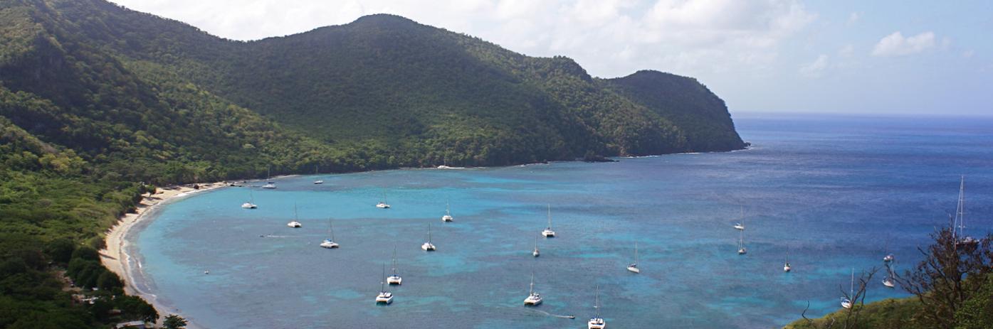 A bay full of yachts in the natural harbor's blue water in Chatham Bay